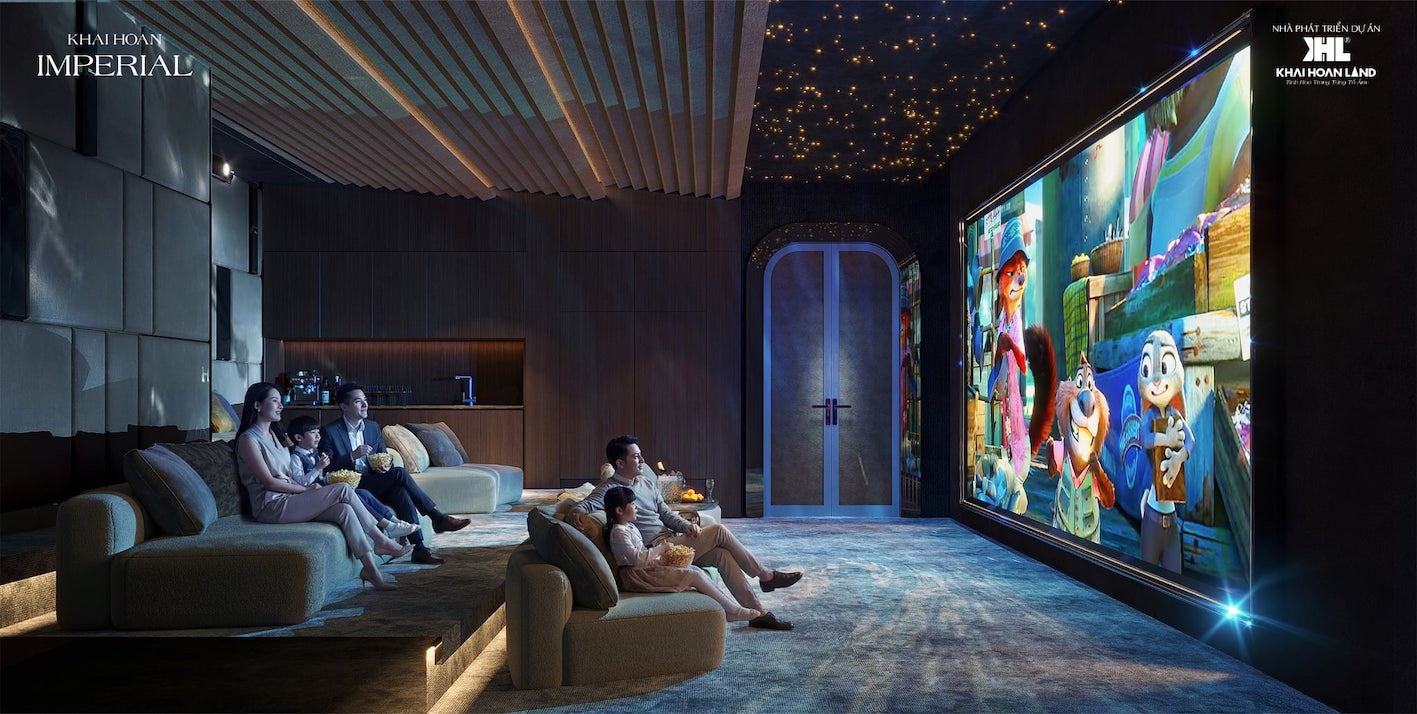 Rạp chiếu phim mini mang đến những phút giây thư giãn cho cả nhà. Đặc biệt, trung tâm khách tiết với không gian sang trọng sẽ là nơi ghi dấu những dịp sum họp đáng nhớ, những sự kiện quan trọng của mỗi gia đình.