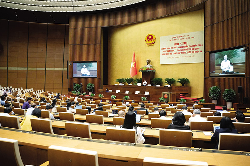 Phiên thảo luận sáng 1/10 của Hội nghị đại biểu Quốc hội hoạt động chuyên trách. Ảnh: P.T |