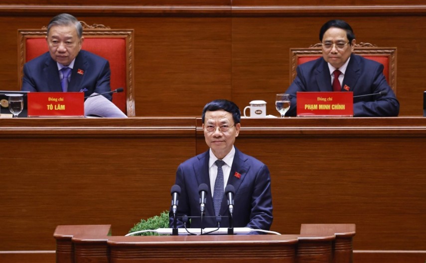 | Bộ trưởng Bộ Khoa học và Công nghệ Nguyễn Mạnh Hùng trình bày tham luận tại Đại hội sáng 21/1. Ảnh: TTXVN |