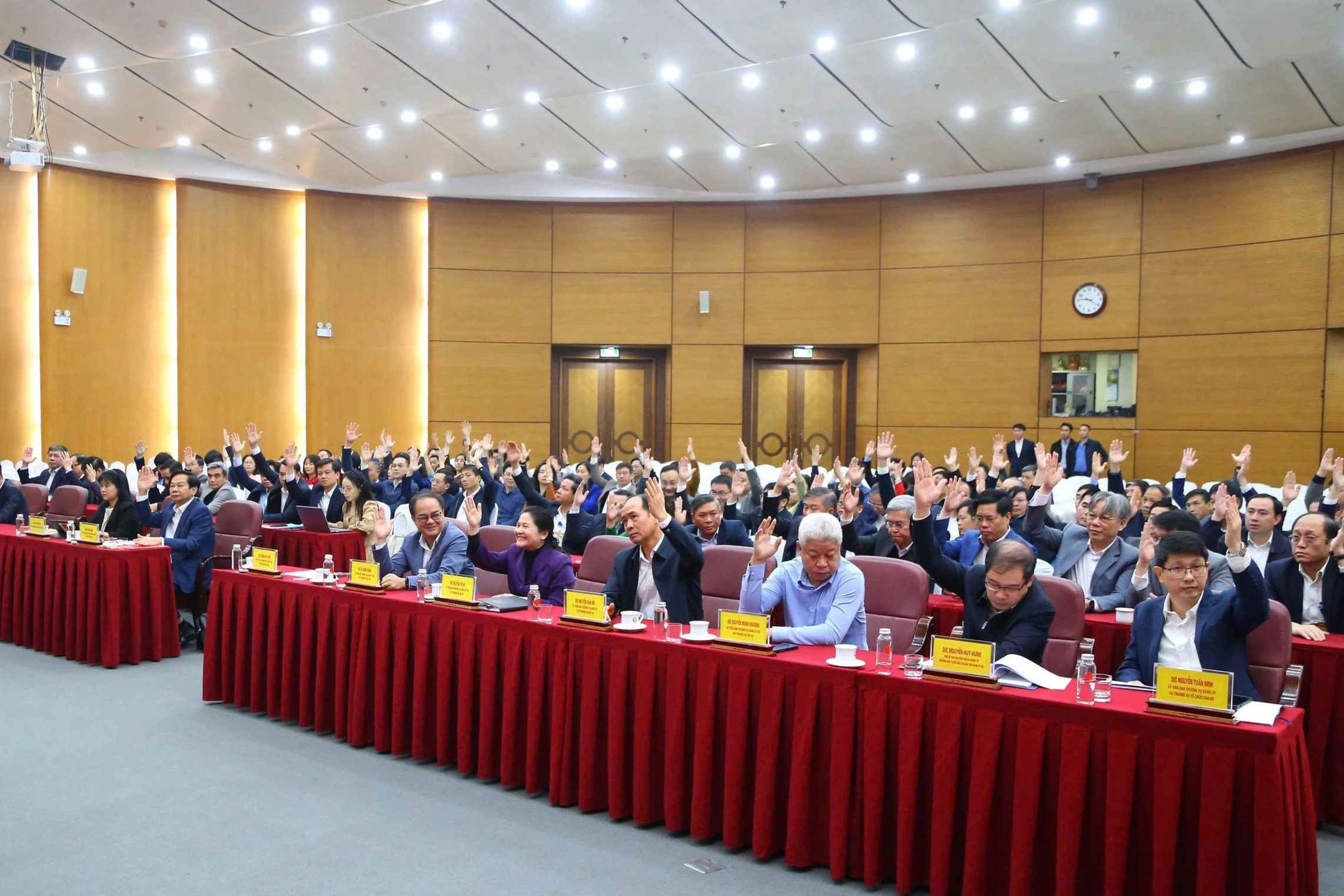 | 100% đại biểu dự hội nghị đồng ý giới thiệu Bộ trưởng Bộ Nội vụ Đỗ Thanh Bình ứng cử đại biểu Quốc hội khóa XVI. Ảnh: Tống Giáp. |
