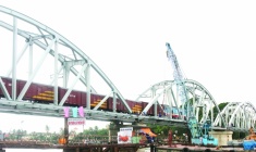 | Hiện trường vụ sà lan đâm vào nhịp cầu Ghềnh. |