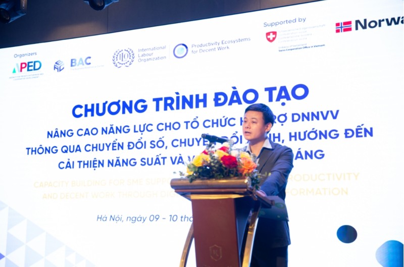 Tiếp nối thành công của khóa đào tạo đầu tiên tại Hải Phòng, Cục Phát triển doanh nghiệp tư nhân và kinh tế tập thể (Bộ Tài chính) phối hợp với Tổ chức Lao động Quốc tế (ILO) tại Việt Nam tổ chức khóa đào tạo thứ hai trong chuỗi chương trình “Nâng cao năng lực cho tổ chức hỗ trợ doanh nghiệp vừa và nhỏ thông qua chuyển đổi số, chuyển đổi xanh, hướng đến cải thiện năng suất và việc làm thỏa đáng” tại Hà Nội.