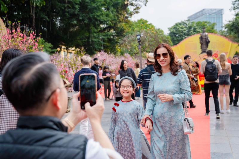 Không khí du xuân càng thêm hấp dẫn và sôi nổi với các trải nghiệm xin chữ ông đồ và các tiểu cảnh lấy cảm hứng từ "Hà Nội 12 mùa hoa". "Chưa bao giờ Hà Nội có không gian quy mô và đẹp như thế này. Không cần phải di chuyển xa ra tận các vườn đào Nhật Tân hay Phú Thượng mà vẫn có thể check-in với những gốc đào cổ thụ đẹp nhất ngay giữa Hồ Gươm, thực sự rất ấn tượng"- chị Lan Anh (Hoàn Kiếm) hào hứng chia sẻ.