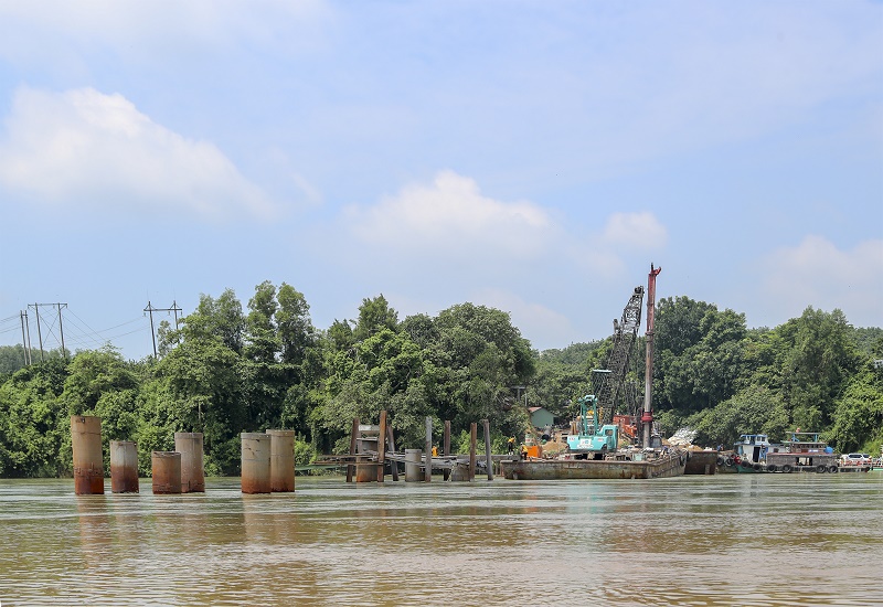 | Thi công cầu Hiếu Liêm. Ảnh: Ngọc Tuấn |