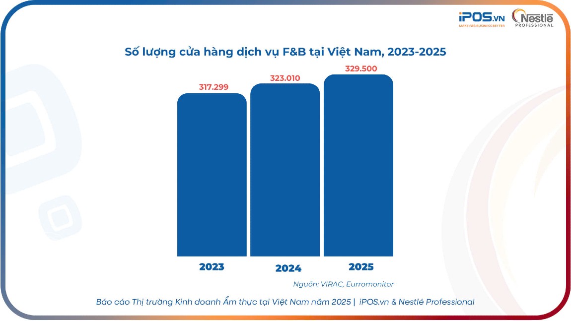 | Số lượng cửa hàng toàn ngành F&B năm 2025 chỉ tăng 2% so với năm 2024 |