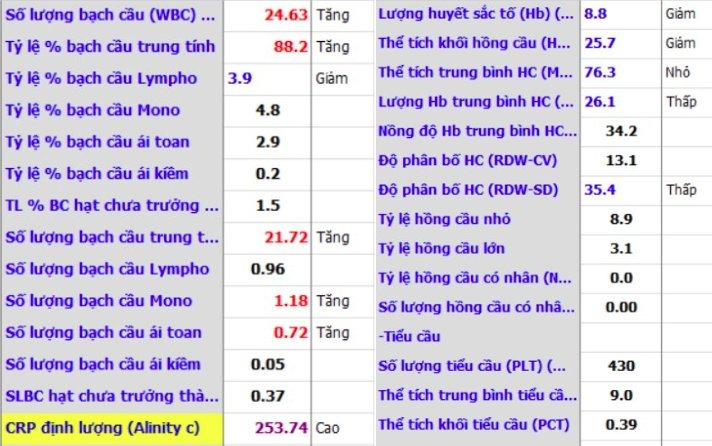 | Kết quả xét nghiệm của bệnh nhân cho thấy chỉ số CRP tăng cao. |