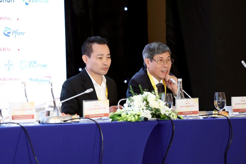 | Tiến sĩ, Bác sĩ CKII Mai Trọng Hưng, Giám đốc Bệnh viện Phụ sản Hà Nội (bên trái) chủ trì một phiên thảo luận. |