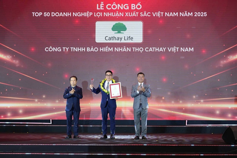 Ngày 28/10/2025, Công ty TNHH Bảo hiểm Nhân thọ Cathay Việt Nam (Cathay Life Việt Nam) được vinh danh tại buổi lễ công bố “Top 500 doanh nghiệp lợi nhuận tốt nhất Việt Nam năm 2025” (PROFIT500) do Công ty Cổ phần Báo cáo Đánh giá Việt Nam (Vietnam Report) tổ chức.