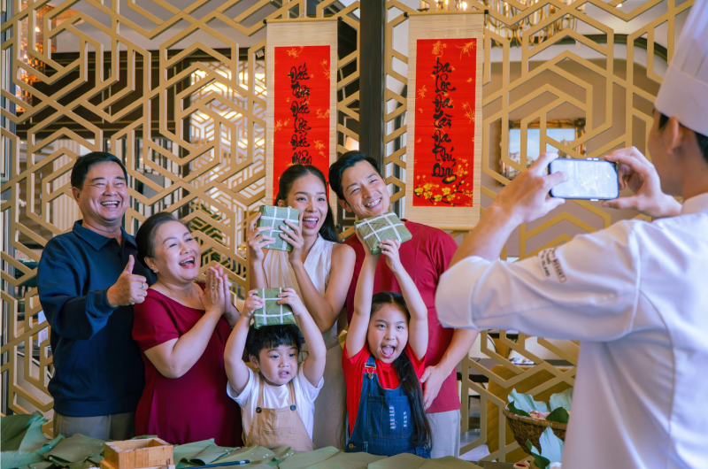 Ẩm thực mùa Tết tại đây là sự giao thoa tinh tế giữa phong vị quê nhà và tinh hoa quốc tế. Các bữa tiệc buffet mỗi ngày luôn ngập tràn món ngon truyền thống, nơi ngài Thần Tài vui tính sẽ ghé thăm và trao tặng những bao lì xì may mắn.