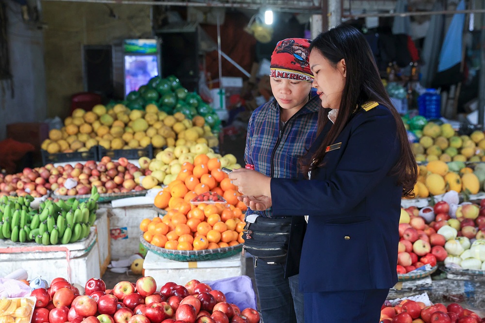 | Công chức thuế hỗ trợ hộ kinh doanh thực hiện các thủ tục về thuế. Ảnh: Đức Thanh. |