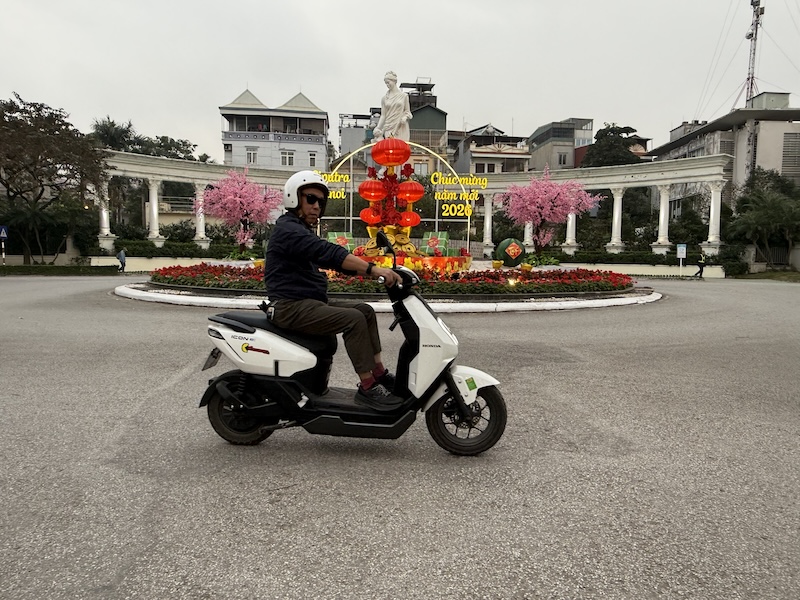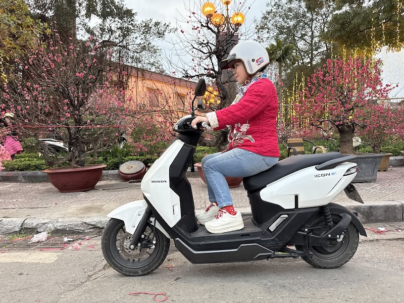 “Khi vặn ga từ từ thì xe phản hồi rất mượt, không có sự giật cục khi đang trong dòng xe đông. Sử dụng xe máy điện ICON e: vào những ngày cận Tết nguyên đán đông đúc về giao thông tại Hà Nội cũng hiện rõ những ưu thế khi góp phần không thải thêm ra khói độc, gây ô nhiễm không khí”, vợ anh Tuấn Anh cho hay.