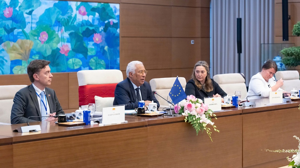 Chủ tịch Hội đồng châu Âu Antonio Costa và các đại biểu trong đoàn. |