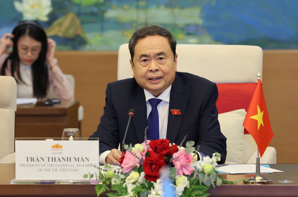 | Chủ tịch Quốc hội Trần Thanh Mẫn phát biểu tại buổi hội kiến. |