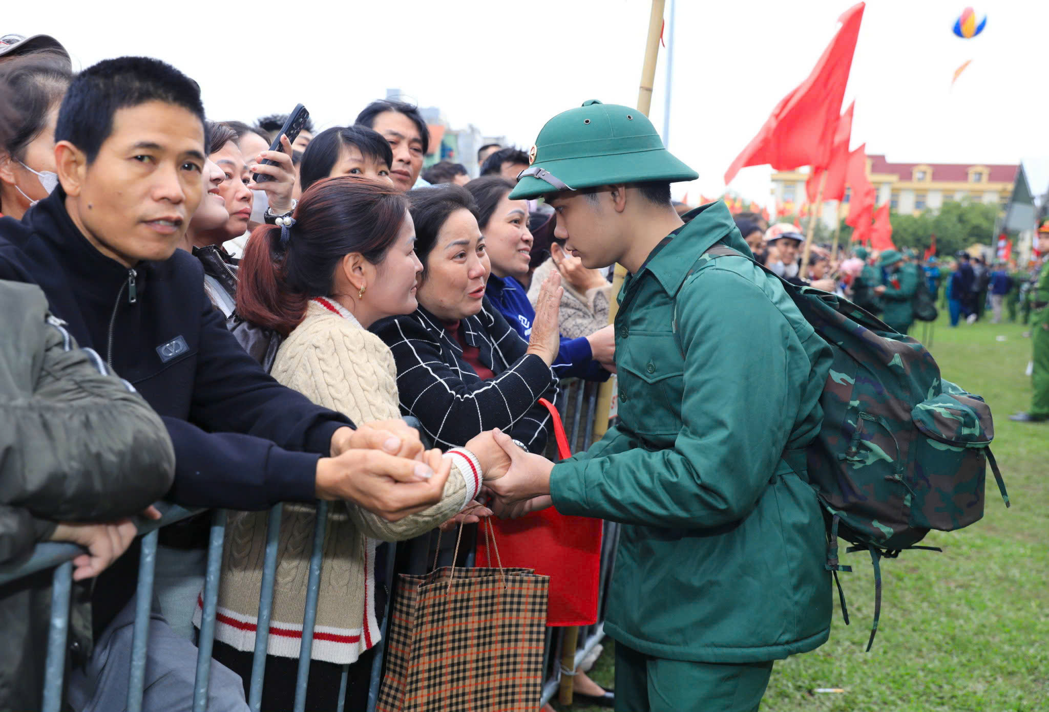 | Tân binh chia tay người thân trước khi lên đường nhập ngũ. |