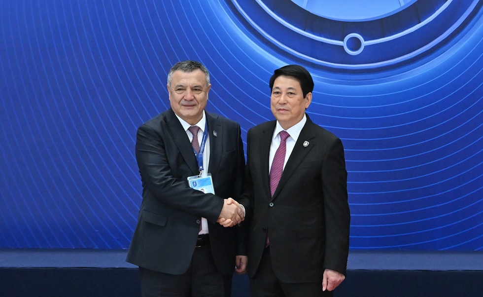 | Chủ tịch nước Lương Cường đón Chủ tịch Hạ viện Uzbekistan tới dự Lễ mở ký. |