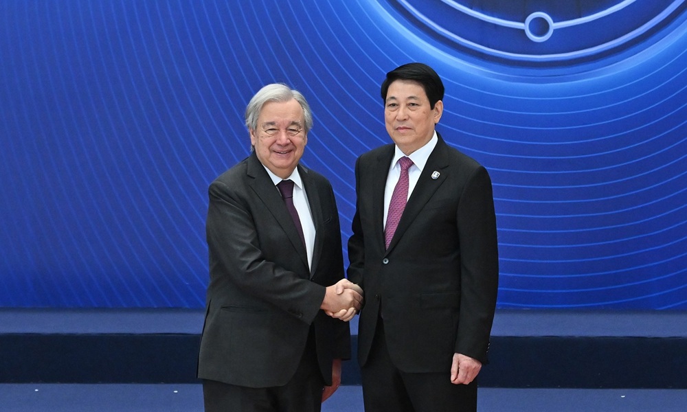 | Chủ tịch nước Lương Cường đón Tổng Thư ký Liên hợp quốc Antonio Guterres tới dự Lễ mở ký. |