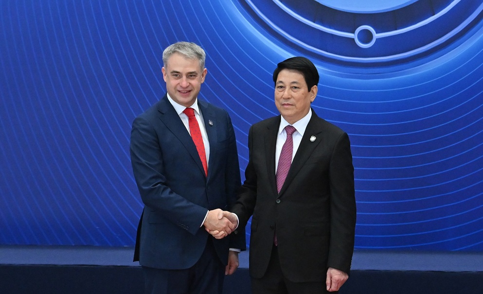 | Chủ tịch nước Lương Cường đón Tổng công tố Liên bang Nga tới dự Lễ mở ký. |