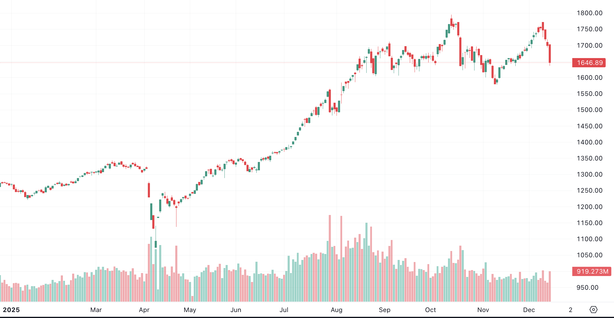 Chứng khoán phiên 12/12: Giảm giá đồng loạt, VN-Index lùi về 1.646 điểm -