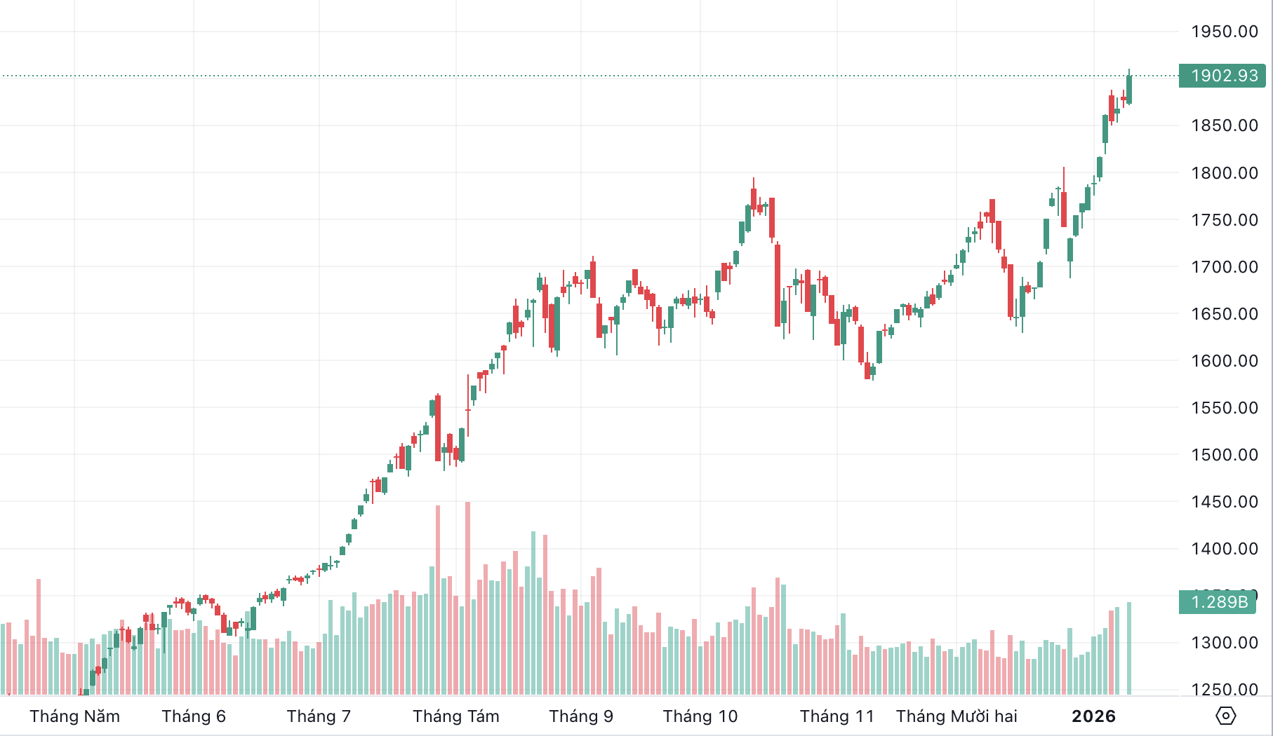 Phiên giao dịch ngày 13/1, VN-Index thiết lập kỷ lục mới khi tăng nhanh chóng và đóng cửa tại 1.902,93 điểm.