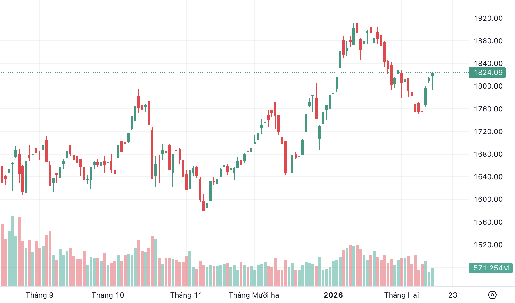 Sau 3 tuần chịu áp lực điều chỉnh từ vùng giá 1.920 điểm về vùng giá 1.740 điểm, thị trường đã ngắt mạch suy giảm và phục hồi tốt trở lại. VN-Index có 02 phiên đầu tuần biến động mạnh và vẫn giữ được đường xu hướng tăng trưởng trung dài hạn từ tháng 04/2025 đến nay. Chỉ số qua đó phục hồi, tăng điểm tốt trong 03 phiên tiếp theo với thanh khoản cải thiện. Kết tuần VN-Index tăng 3,91% so với tuần trước trong khi VN30 kết tuần tăng 3,86% lên mức 2.018,64 điểm, hướng đến vùng giá quanh 2.050 điểm.