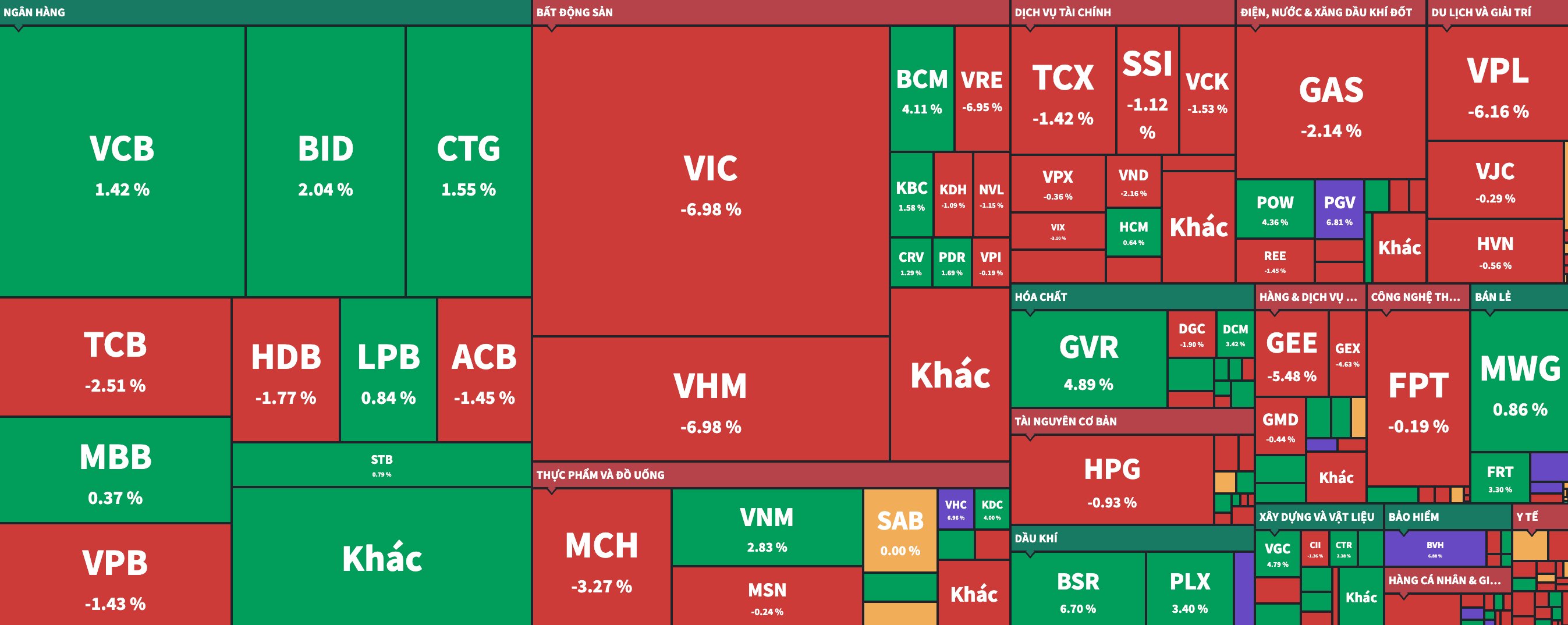 Tính ra, chỉ 3 mã VIC - VHM và VPL đã làm chỉ số mất đến 24 điểm, chưa kể tới VRE. Do đó, nếu như loại trừ sức ảnh hưởng của nhóm cổ phiếu này, chỉ số vẫn sẽ xanh giá.