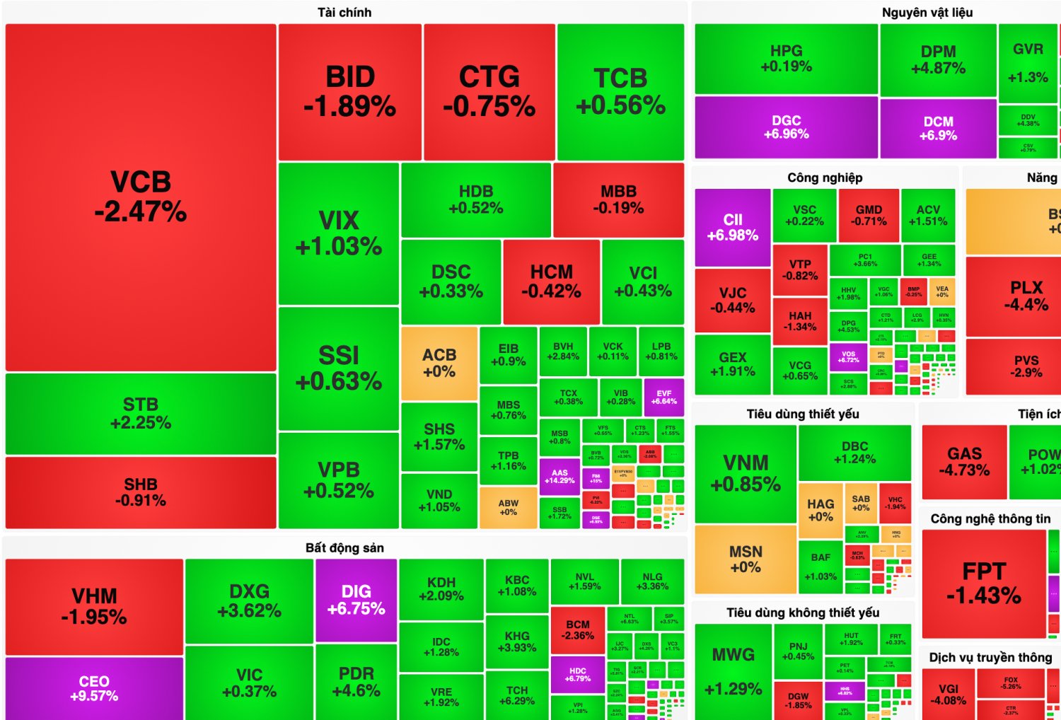 | Bản đồ nhiệt thị trường phiên 22/1 |