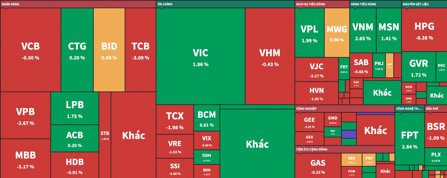 | Bản đồ nhiệt sàn HoSE phiên 24/10. |