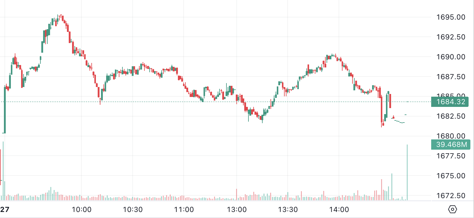 Đóng cửa phiên giao dịch hôm nay (27/11), VN-Index tăng được 3,96 điểm lên 1.684,32 điểm.