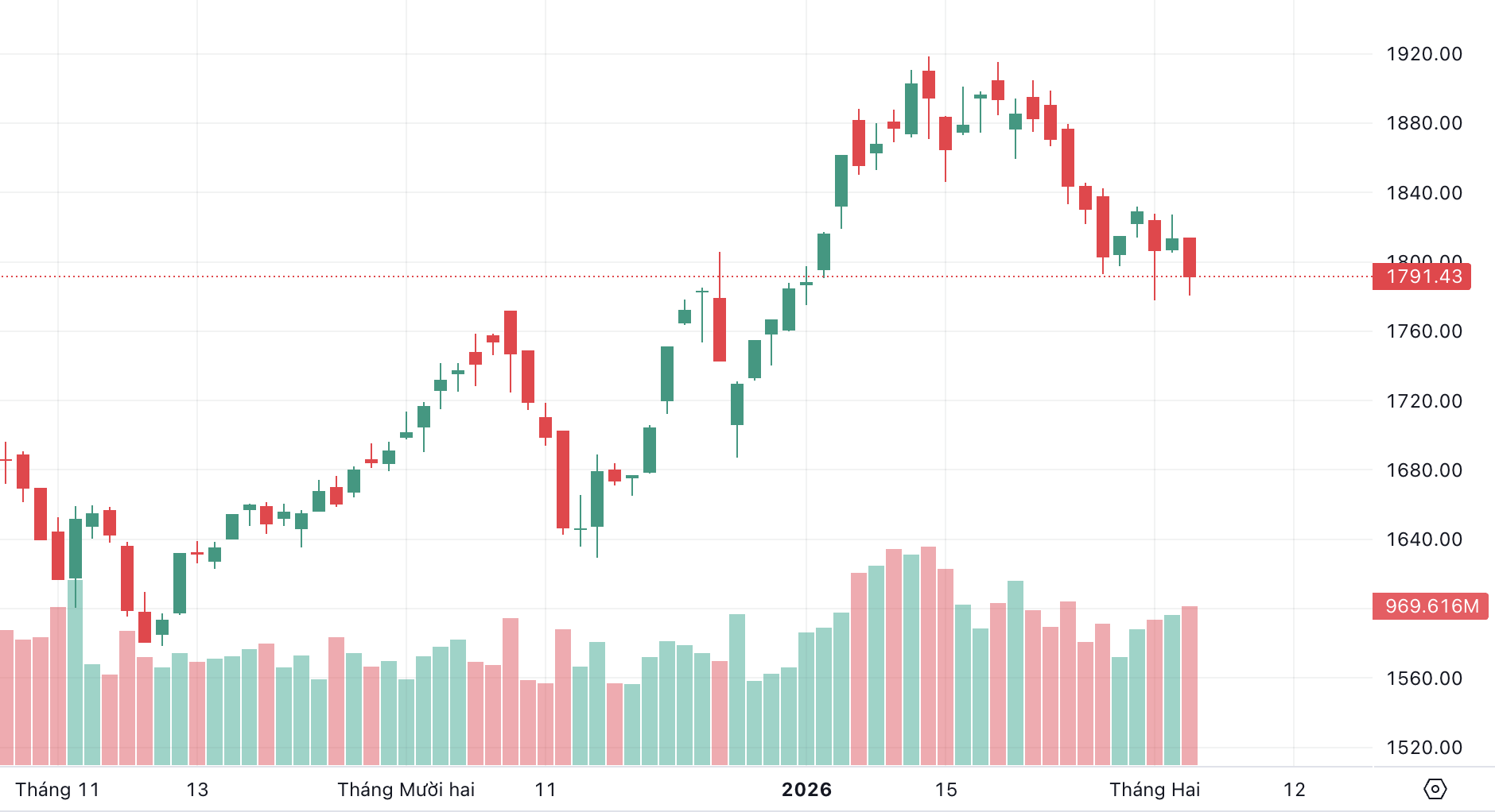 Thị trường vẫn đang trong xu hướng giằng co tích lũy khi dao động liên tục. Phiên 4/2 hôm nay, chỉ số lại quay đầu giảm điểm. Đóng cửa phiên, VN-Index chốt lại ở mức 1.791,43 điểm, giảm gần 22 điểm tương đương -1,21%.