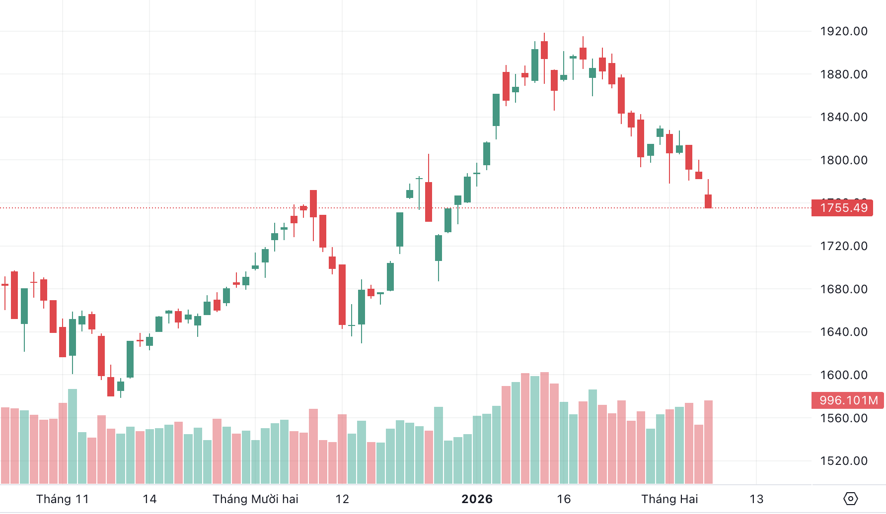 VN30 có phiên giảm giá thứ 5 liên tiếp, chỉ số lùi về 1.943,6 điểm, tương đương vùng giá vào cuối tháng 12/2025.