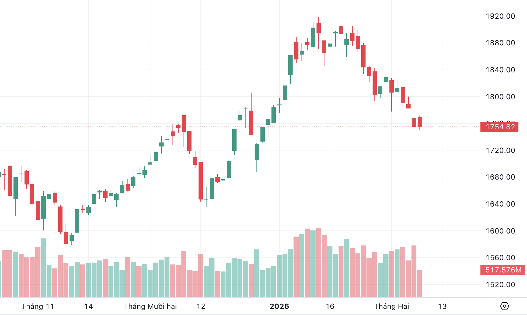| Diễn biến của chỉ số VN-Index |
