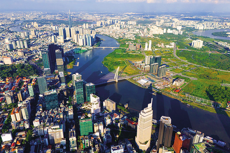 | Trung tâm Tài chính quốc tế tại TP.HCM có diện tích khoảng 898 ha, thuộc địa giới hành chính phường Sài Gòn, phường Bến Thành, Khu đô thị mới Thủ Thiêm thuộc phường An Khánh. Trong ảnh: Khu vực ven sông Sài Gòn, Khu đô thị Thủ Thiêm. Ảnh: Lê Toàn |