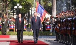 Lễ đón trọng thể Tổng Bí thư Tô Lâm tại thủ đô Viêng Chăn (Lào) -