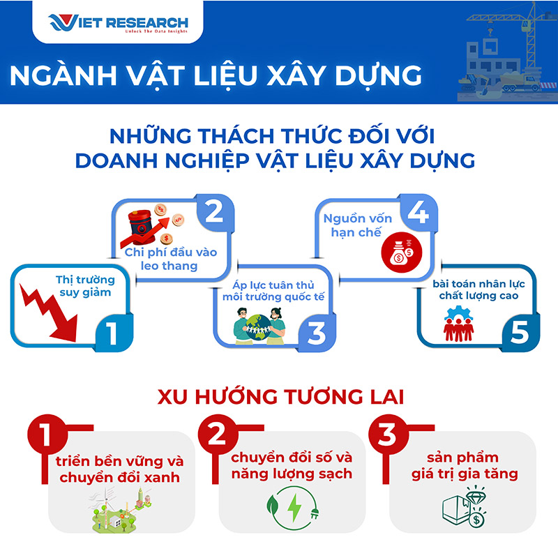 Kết quả khảo sát và nghiên cứu các doanh nghiệp xây dựng của Viet Research trong Top 10 Doanh nghiệp tạo giá trị hàng đầu Việt Nam 2025 - Ngành Vật liệu xây dựng cho thấy có 3 xu hướng lớn sẽ định hình tương lai ngành.