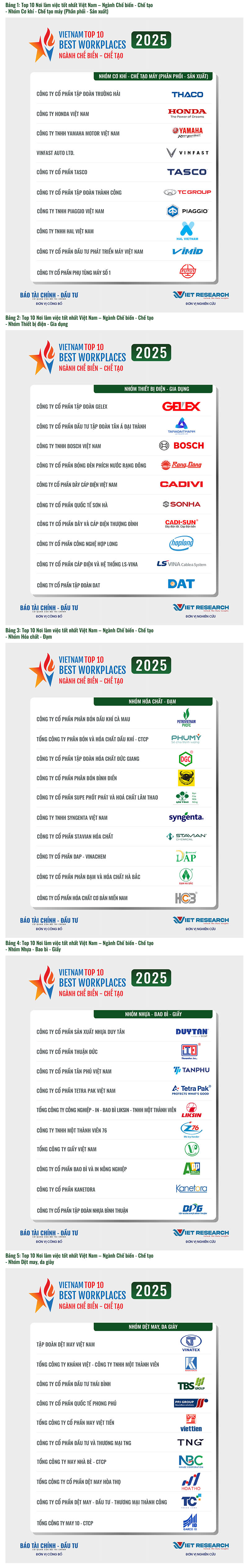 | Nguồn: Top 10 Nơi làm việc tốt nhất Việt Nam ngành Chế biến - Chế tạo (https://vbw10.vn/) |