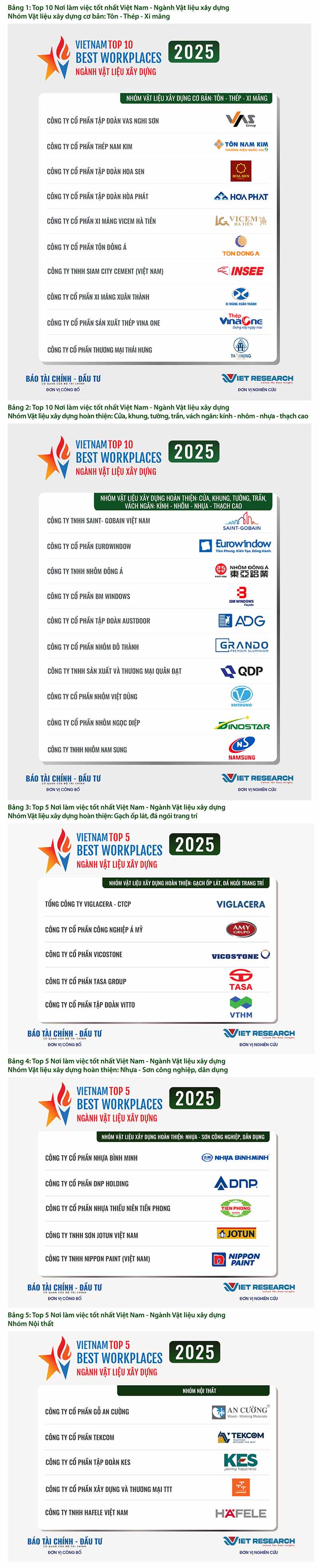 | Nguồn: Top 10 Nơi làm việc tốt nhất Việt Nam ngành Vật liệu xây dựng (https://vbw10.vn/) |