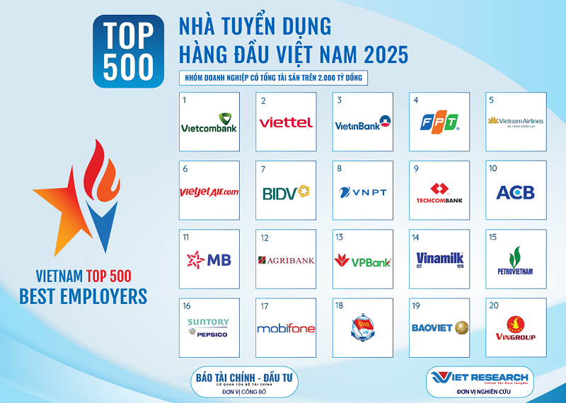 | Nguồn: Top 500 Nhà tuyển dụng hàng đầu Việt Nam 2025 (VBE500) (https://bestemployer.vn/) |