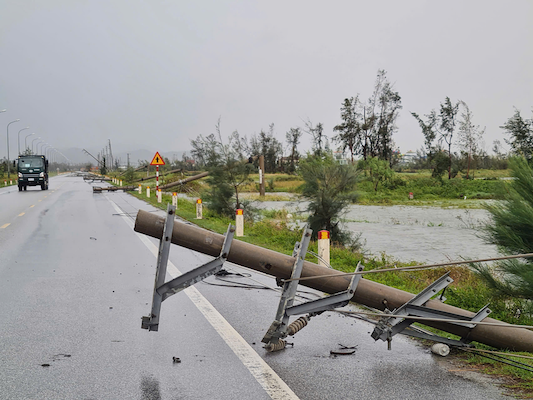 | Hai cơn bão số 5 và số 10 đã khiến hạ tầng lưới điện tại tỉnh Hà Tĩnh bị tổn thất nặng nề. |