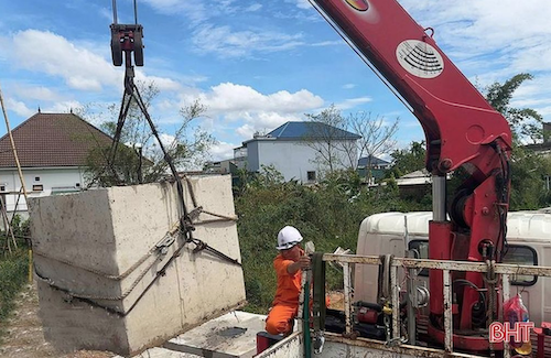 Cụ thể, về mặt bằng, Công ty Điện lực Hà Tĩnh yêu cầu các đơn vị phối hợp chính quyền địa phương mở đường tạm, gia cố lối tiếp cận tại các điểm sạt lở; đồng thời cắm mốc, đánh dấu lộ trình để phương tiện cơ giới vào thi công an toàn.