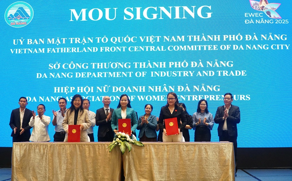 Ngày 2/10, trong khuôn khổ Hội nghị Kết nối giao thương, xúc tiến xuất khẩu - Đà Nẵng 2025, Sở Công thương Đà Nẵng, Ủy ban Mặt trận Tổ quốc Việt Nam thành phố Đà Nẵng và Hiệp hội Nữ Doanh nhân Thành phố đã ký kết biên bản ghi nhớ hợp tác hỗ trợ doanh nghiệp nữ.