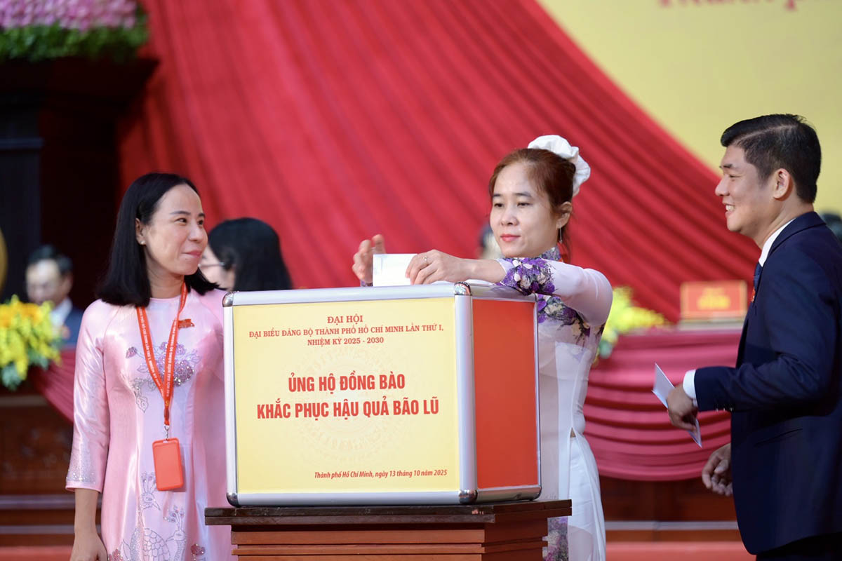 Tại Đại hội, với tinh thần truyền thống đoàn kết, tương thân tương ái, TP.HCM vì cả nước, cùng cả nước, các đại biểu tham dự Đại hội tiếp tục tham gia đóng góp, ủng hộ đồng bào khắc phục hậu quả thiên tai.