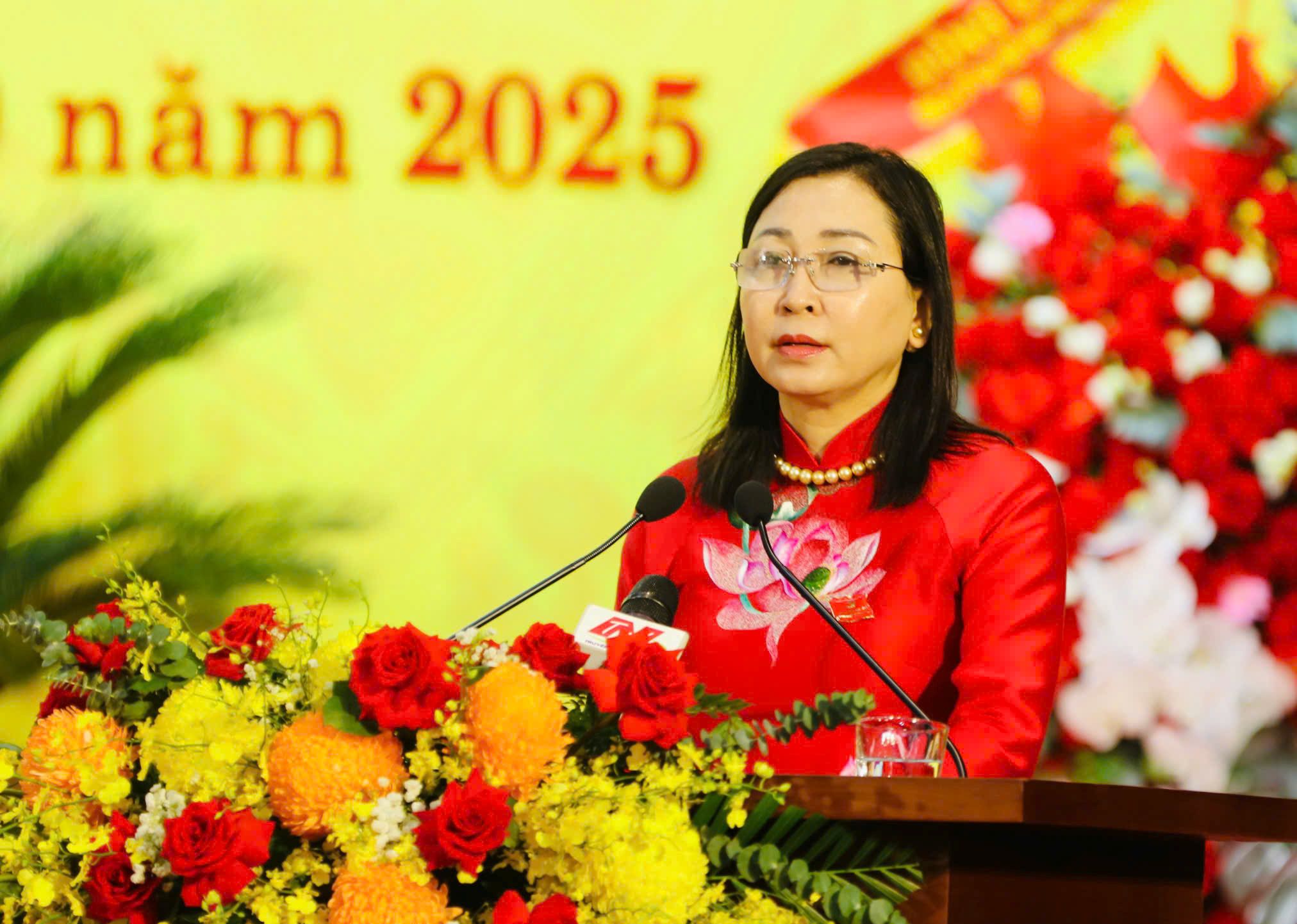 Phó bí thư Thường trực Tỉnh ủy Đinh Thị Lụa phát biểu tại Đại hội. |