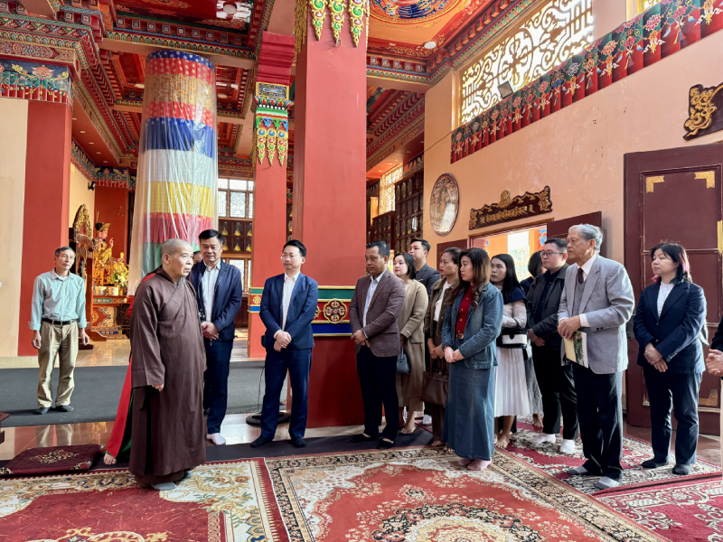 | Các đại biểu khảo sát chùa Long Quang. Ảnh: Hồ Hạ. |