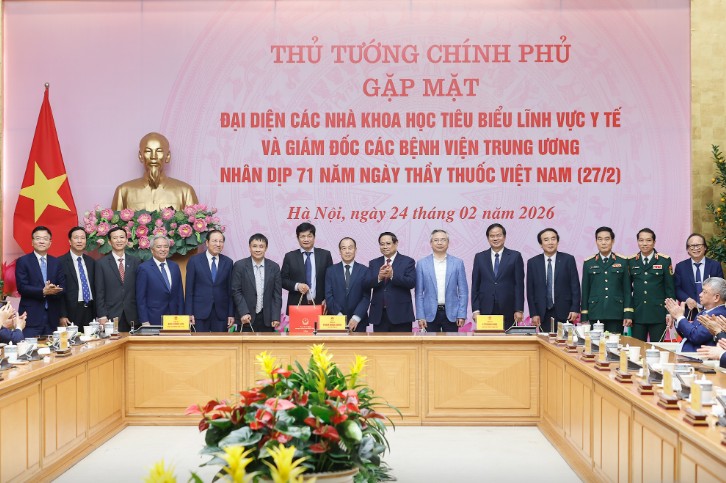 Phát biểu tại buổi gặp mặt, nhân kỷ niệm 71 năm Ngày Thầy thuốc Việt Nam 27/2, Thủ tướng Chính phủ Phạm Minh Chính thay mặt lãnh đạo Đảng, Nhà nước, Tổng Bí thư Tô Lâm gửi đến các đại biểu và các nhà khoa học, chuyên gia, nhà quản trị ngành y tế, đội ngũ y bác sĩ, thầy thuốc Việt Nam lời chúc mừng tốt đẹp nhất.