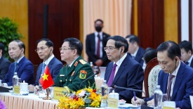 Thúc đẩy hợp tác Việt Nam - Campuchia trong giai đoạn mớiTại cuộc hội đàm sáng 8/12, lãnh đạo Chính phủ Việt Nam - Campuchia trao đổi nhiều định hướng tăng cường hợp tác, củng cố quan hệ láng giềng hữu nghị và thúc đẩy phát triển khu vực biên giới. -