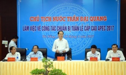Khởi động đồng hồ đếm ngược chào mừng Tuần lễ cấp cao APEC 2017 tại Đà NẵngSáng 18/4, Chủ tịch nước Trần Đại Quang cùng đoàn công tác đã tiến hành nghi thức bấm nút chính thức khởi động đồng hồ đếm ngược chào mừng tuần lễ cấp cao APEC 2017 tại Đà Nẵng do Ủy ban Quốc gia APEC 2017 và UBND thành phố Đà Nẵng tổ chức.
