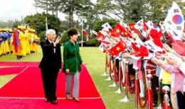 Tổng Bí thư Nguyễn Phú Trọng hội đàm chính thức với Tổng thống Park Geun Hye() Theo đặc phái viên TTXVN, đúng 10 giờ sáng 2/10 theo giờ Seoul (tức 8 giờ sáng theo giờ Hà Nội), tại Phủ Tổng thống Hàn Quốc đã diễn ra Lễ đón chính thức Tổng Bí thư Nguyễn Phú Trọng và Đoàn đại biểu cấp cao Việt Nam thăm cấp Nhà nước tới Hàn Quốc. -