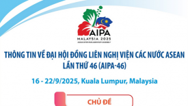 Thông tin về Đại hội đồng liên Nghị viện các nước ASEAN lần thứ 46 (AIPA-46)Đại hội đồng liên Nghị viện các nước ASEAN lần thứ 46 (AIPA-46) diễn ra từ ngày 16 - 22/9/2025, tại Kuala Lumpur, Malaysia. Tương ứng với chủ đề của ASEAN 2025 là “Bao trùm và bền vững”, chủ đề của AIPA-46 là “Quốc hội ở tuyến đầu vì một ASEAN tăng trưởng bao trùm và bền vững”. -