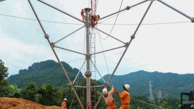 Để đảm bảo tiến độ dự án cấp điện lưới quốc gia cho Côn Đảo và Đường dây 500 kV Lào Cai - Vĩnh Yên, EVNNPT đã huy động hàng trăm kỹ sư, công nhân truyền tải đến hiện trường triển khai dựng cột, kéo dây.