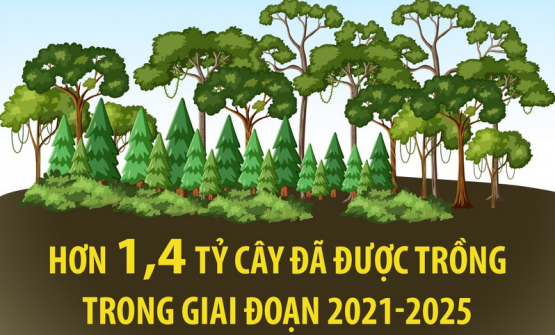 Sau 5 năm thực hiện Đề án “Trồng một tỷ cây xanh giai đoạn 2021 - 2025”, cả nước đã trồng được hơn 1,4 tỷ cây xanh, đạt 143,9% so với mục tiêu, nhiệm vụ của Đề án. Trong đó, trồng cây xanh phân tán: 573,9 triệu cây; trồng cây xanh trong rừng tập trung: 865,2 triệu cây, tương đương với 429.125 ha rừng.